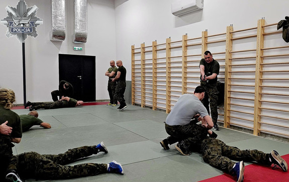 Współdziałanie w patrolu, asekuracja podczas czynności, czy radzenie sobie w trakcie interwencji z agresywną osobą, to tylko część elementów, których policyjni instruktorzy z Wydziału Kadr i Szkolenia łódzkiej komendy uczą funkcjonariuszy Straży Ochrony Kolei i żołnierzy z 9 Łódzkiej Brygady Obrony Terytorialnej podczas wspólnych szkoleń.