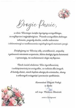 Życzenia z okazji Dnia Kobiet od Kierownictwa Komendy Miejskiej Policji w Łodzi