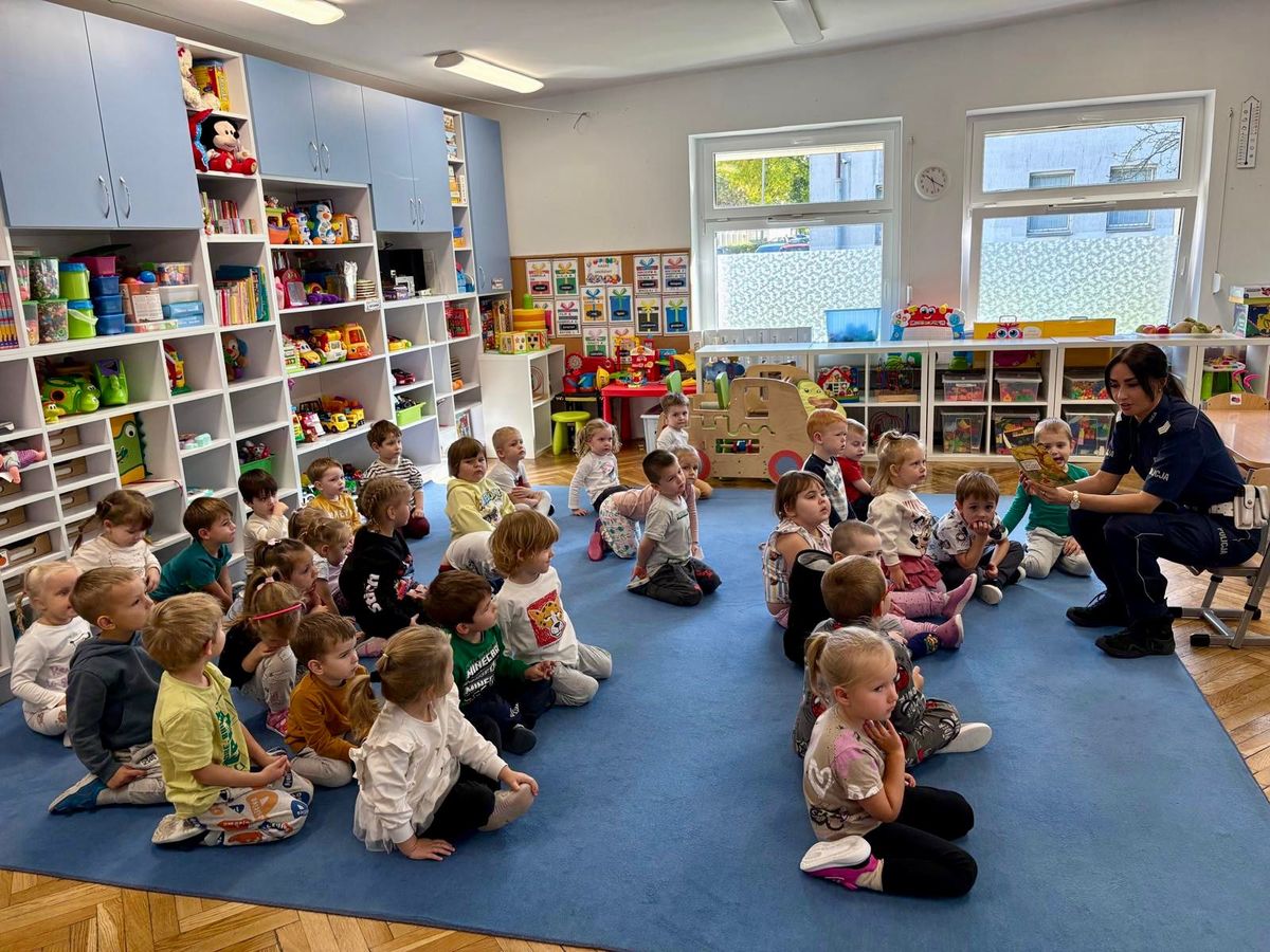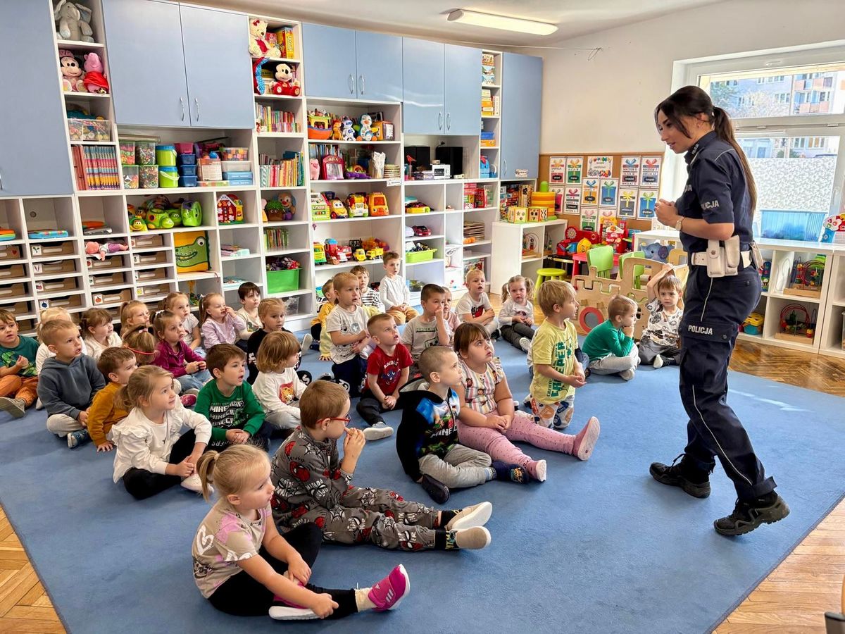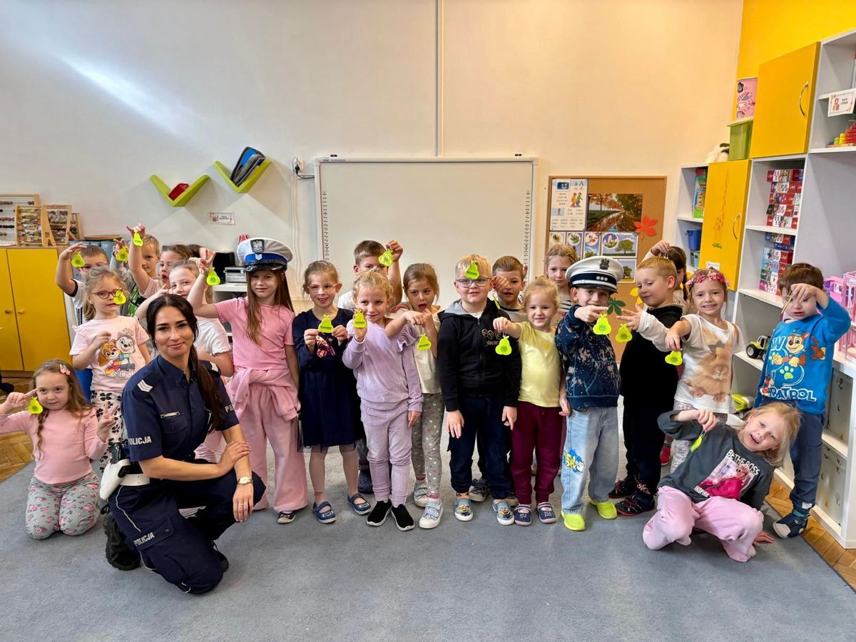 Podczas spotkania, które miało miejsce 2 października 2025 roku, maluchy utrwalały wiedzę na temat korzystania w bezpieczny sposób z przejść dla pieszych oraz uczyły się czego nie powinny robić, gdy do takiego przejścia się zbliżają. Rozmawiały z policjantką o sygnalizacji świetlnej – przypominały sobie, jakie kolory są na sygnalizatorze i co oznaczają oraz jak ważne jest rozglądanie się przed wejściem na jezdnię. Ważnym elementem tej wizyty była rozmowa o przestrzeganiu zasad poruszania się po drogach, szczególnie po zmroku, kiedy niezbędne stają się elementy odblaskowe. Policjantka przeczytała najmłodszym książeczkę o „Bezpiecznym przedszkolaku”, aby w przystępny sposób przekazać im wiedzę dotyczącą bezpieczeństwa.
