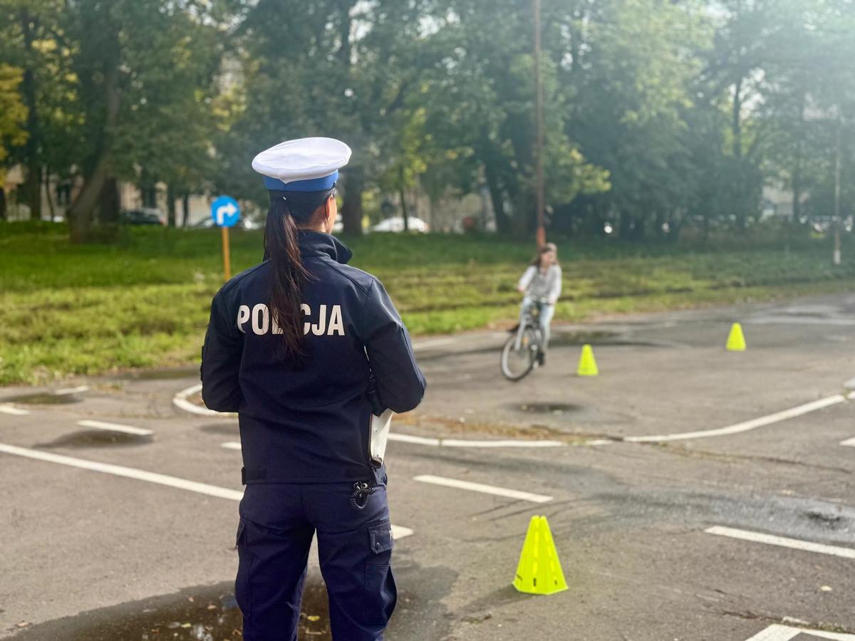 Egzamin na kartę rowerową z policjantką z Wydziału Ruchu Drogowego Komendy Miejskiej Policji w Łodzi