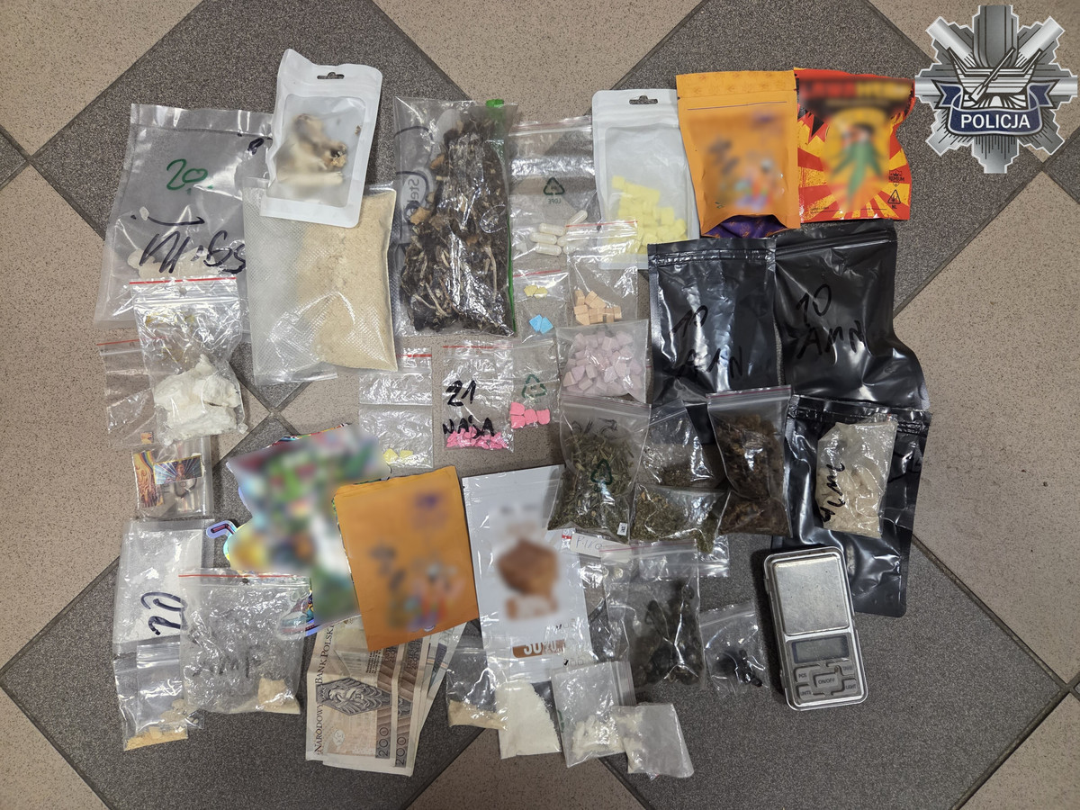 Po dotarciu pod wytypowany adres drzwi otworzył podejrzewany przez kryminalnych 44-latek. Podczas przeszukania wyszło na jaw, że miał skryte różnego rodzaju narkotyki. Łącznie policjanci znaleźli ponad 350 gramów substancji odurzających oraz 124 sztuki tabletek MDMA.