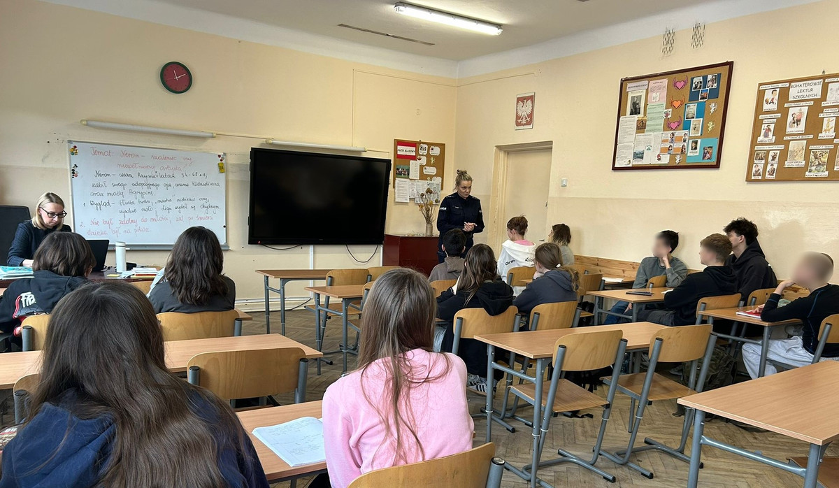 Dzień później, 19 lutego 2025 roku, funkcjonariusze z Wydziału Prewencji (dzielnicowi i z Ogniwa ds. Nieletnich i Patologii) z poleskiego komisariatu prowadzili prelekcje w klasach VIII w Szkole Podstawowej nr 152. Jej głównym tematem było szeroko rozumiane bezpieczeństwo, odpowiedzialność prawna nieletnich, a także wybór szkoły średniej – liceum mundurowego – jako jeden z kroków przybliżających młodych ludzi do wstąpienia do Policji.