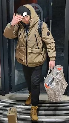 Rysopis sprawcy: mężczyzna w wieku około 30 - 35 lat, w chwili zdarzenia ubrany był w kurtkę z kapturem koloru brązowego, czarne spodnie dresowe, czarną czapkę zimową, czarne zimowe buty. Posiadał przy sobie czarno-biały plecak i szaro-białą torbę.