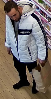 Rysopis sprawcy: mężczyzna szczupłej budowy ciała, włosy krótkie ciemne, posiada ciemny zarost, bokobrody. W chwili zdarzenia ubrany był w białą zimową kurtkę i ciemne spodnie.