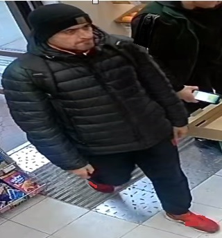 Rysopis: mężczyzna: w wieku około 30-40 lat, średniej budowy ciała, ubrany był w czarną kurtkę, czarną czapkę, czarne spodnie dresowe, czerwone buty, posiadał czarny plecak.