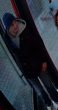 Rysopis: Mężczyzna w wieku około 25-30 lat, ubrany był w granatową czapkę zimową, czarną kurtkę z kapturem, szarą bluze dresową, czarne jeansy, biało-czarne buty, przy sobie miał czarny plecak