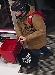 Rysopis sprawcy: mężczyzna w wieku około 35-40 lat, ciemne krótkie włosy, w dniu zdarzenia ubrany był w długą brązową kurtkę sięgającą przed kolano z czarnymi napisami, długie spodnie typu jeans koloru ciemnoniebieskiego, brązowe buty, na głowie miał czarny kask rowerowy, a dodatkowo przy sobie miał czerwono-czarny plecak i czarną torebkę materiałową z białymi napisami