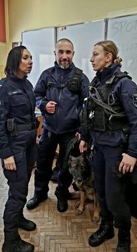 Policjanci z łódzkiej komendy spotkali się w XVIII Liceum Ogólnokształcącego w Łodzi z młodzieżą klas mundurowych. Przewodnicy psów służbowych opowiadali uczniom o ich codziennej służbie z towarzyszącym im zwierzęciem. Przy okazji promowali zawód policjanta, jako jeden z możliwych wyborów przyszłej drogi zawodowej.