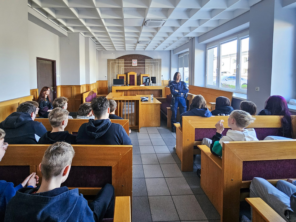 23 kwietnia 2026 roku policjantki z Wydziału Prewencji Komendy Miejskiej Policji w Łodzi udały się na nietypowe spotkanie, bowiem odbyło się ono w Sądzie Rejonowym dla Łodzi Widzewa w Łodzi. Policjantki spotkały się tam z podopiecznymi Młodzieżowego Ośrodka Socjoterapii gdzie od godzin porannych młodzież brała udział w symulacji rozprawy sądowej.